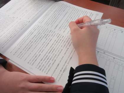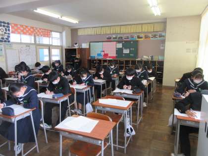 国語の授業です。 緊張感をもって、本番さながらに練習問題に取り組みました。