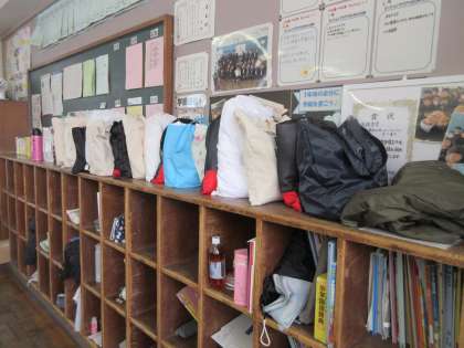 ロッカーの上に柔道着がきちんと並んでいます。