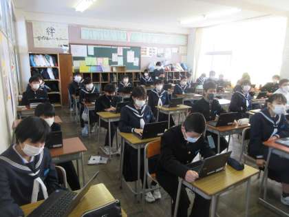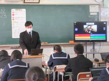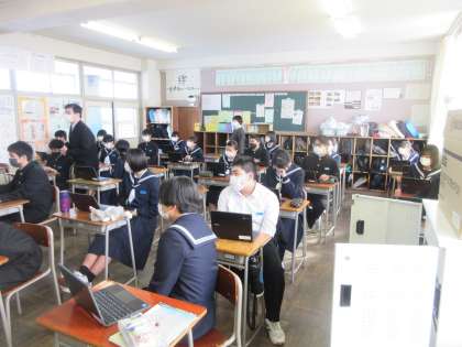 英語の授業です。 ALTのレイ先生と一緒に学習しました。