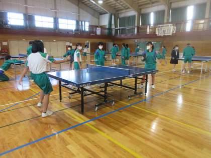 保健体育の授業です。 卓球とバドミントンをしました。