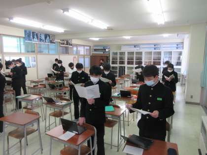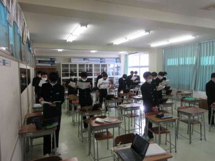 音楽の授業です。 「群青」のパート練習です。