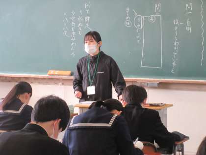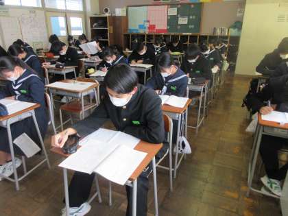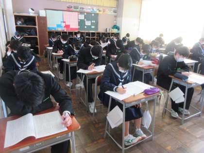 国語の授業です。 緊張感をもって練習問題に取り組みます。