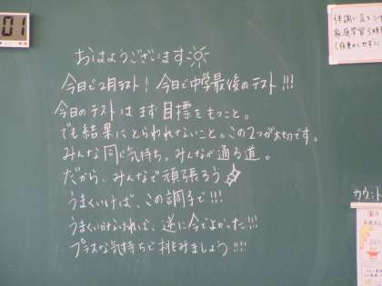 やる気のでる担任からのメッセージ。前向きな気持ちで最後のテストに臨みます。