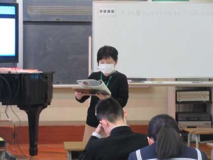 音楽の授業です。 日本の民謡を鑑賞しました。