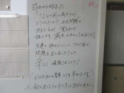1年生が、昨日から「さよなら前の満点テスト」を始めました。