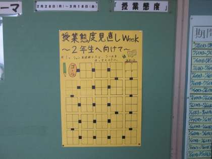 有終の美を目指して、1年生学年生徒会が新しい取組を企画しました。 頑張れ、1年生!来年は先輩です!!