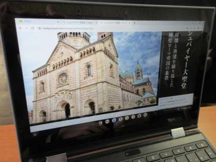 英語の授業です。 世界遺産について調べたことをまとめます。