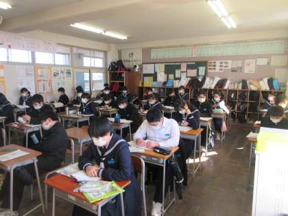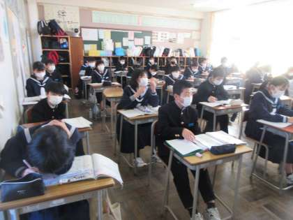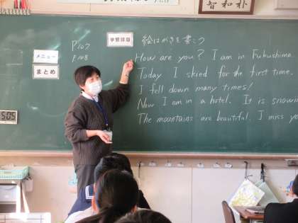 英語の授業です。 「絵はがきを書こう」を学習しました。