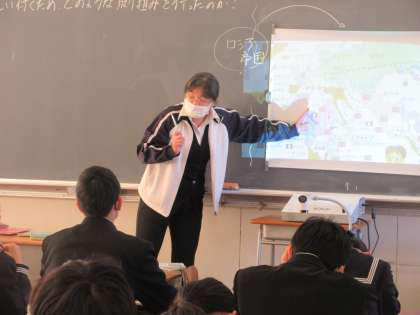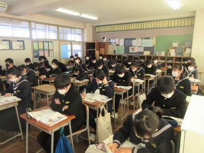 社会の授業です。 日本は列強に追い付くためにどのような取組を行ったのかを学習しました。