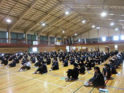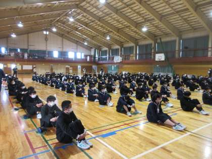3年生が、来週行われる、県立一般入試に向けて、学年集会を行いました。