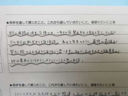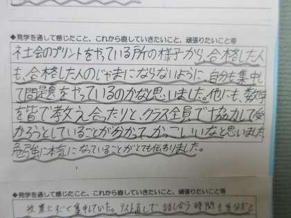 1、2年生が、3年生の授業の様子をビデオで見ました。 ここにも、すばらしい先輩の姿がありました。