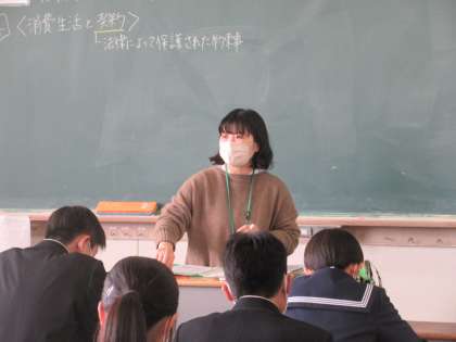 技術・家庭科の授業です。 契約を理解し、消費生活のトラブルを防ぐ方法を学習しました。