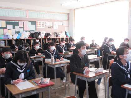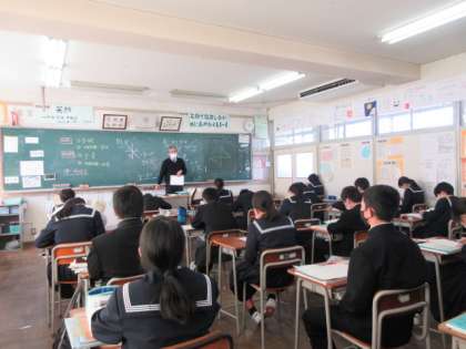 数学の授業です。 比例と反比例について、振り返りの学習を行いました。