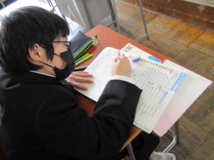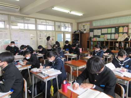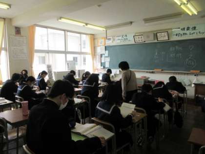 国語の授業です。 体言止めや倒置、対句などの様々な表現技法について学びました。