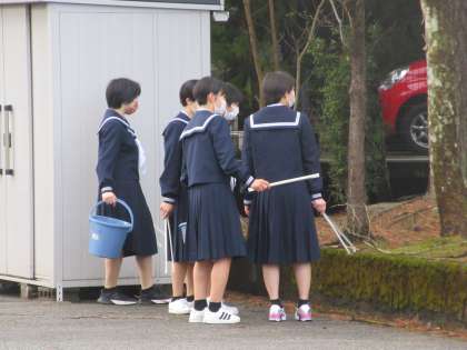 女子バレーボール部が、ごみ拾いや玄関掃除を行いました。 ありがとう!!