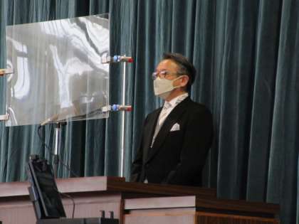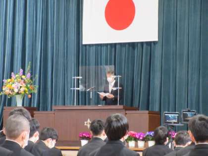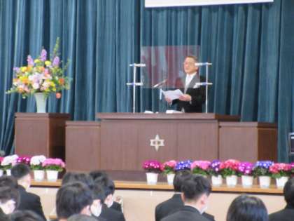 校長「式辞」に引き続き、来賓の方より「祝辞」をいただきます。