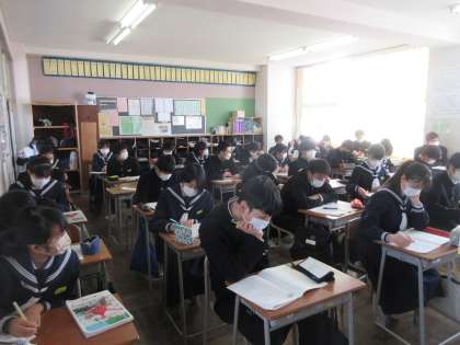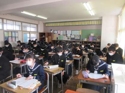 理科の授業です。 復習プリントに取り組みました。