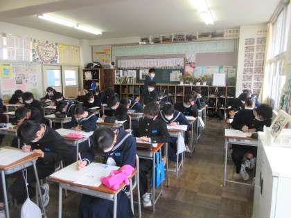 理科の授業です。 第1学年修了(予定)おめでとうテストを行いました。