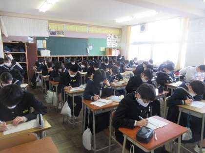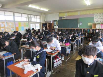 数学の授業です。 復習プリントに取り組みました。