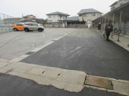 自転車小屋前の大きな穴や水たまりがよくできていた部分が、きれいになりました。