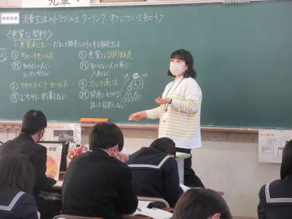 技術・家庭科の授業です。 消費生活のトラブルとクーリングオフを学習しました。