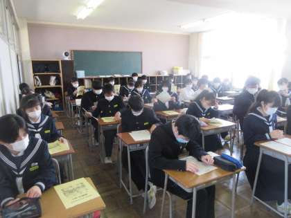 学活の時間です。 進路のしおりを読み合わせました。