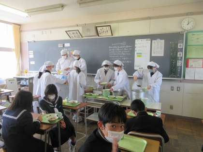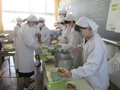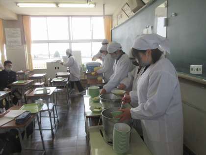 新しいメンバーでの給食の準備です。 てきぱきと働きます。