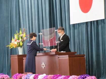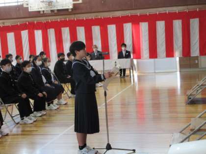 新入生代表生徒が、「誓いの言葉」を述べました。 全文をしっかりと覚え、はきはきと元気のよい決意です!!