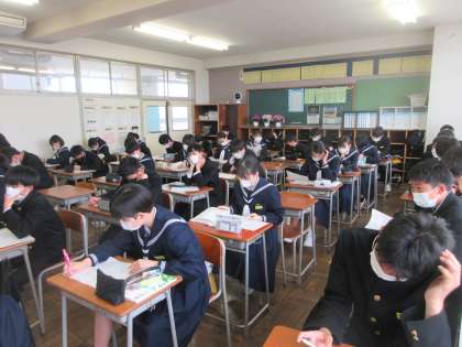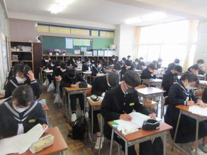 国語の授業です。 中教研学力調査の見直しです。
