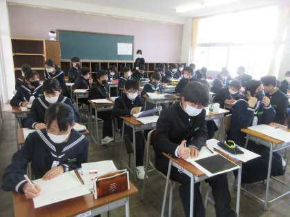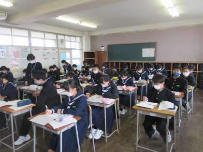 1−1 公開日 2022/04/15 更新日 2022/04/15 第1学年 全校で日課がスタートしました。新しい教科担任もいると思いますので、早くペースをつかんで、授業に集中しましょう!! 1年生も、今日から授業が始まりました。 国語の授業です。「国語の授業の受け方」を確認しました。 「へぇ〜、ノートはそうやって使うんだぁ・・・。」