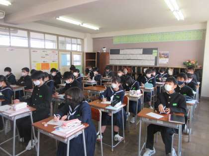 国語の授業です。 まずは、漢字小テストです。