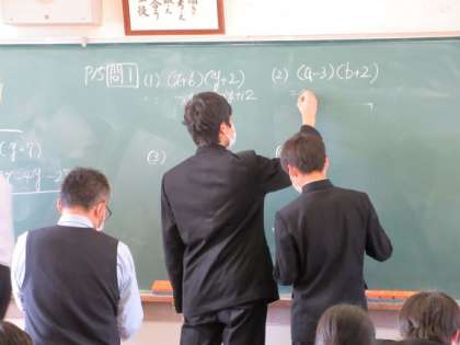 「学び合い」で、答えが分かったようです。「誰か書いてくれる人?」「はーい。」積極的です。