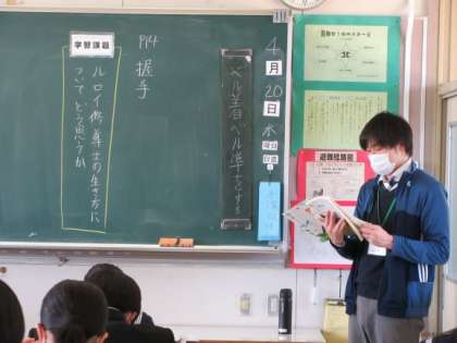 先生の朗読を真剣に聴く様子です。土曜日は、学習参観。どうぞ、活動の様子をご覧になってください。