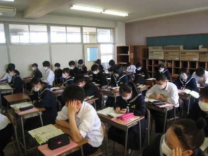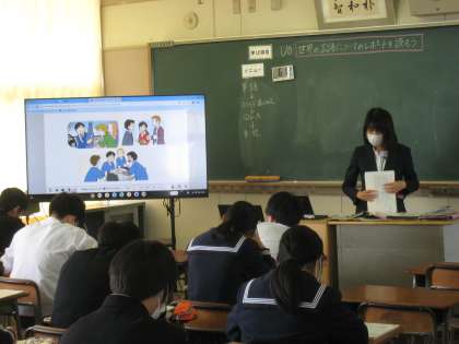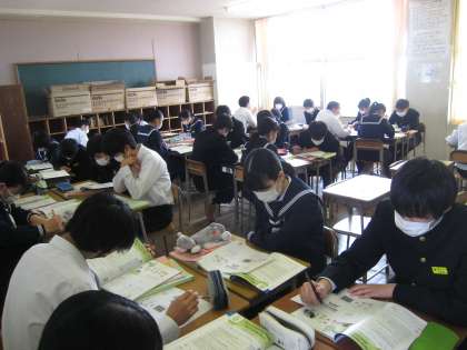 英語の授業です。 世界の言語についてのレポートを読みました。