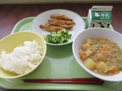 今日の給食 公開日 2022/04/22 更新日 2022/04/22 給食 今日の給食には“わかさぎの南蛮づけ”が…。ふわふわの衣に“甘酢あん”がかかって、大変に美味!!じゃがいものそぼろ煮もほくほくで、ごはんが進みます!! ごはん 牛乳 わかさぎの南蛮づけ きざみ和え じゃがいものそぼろ煮