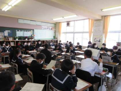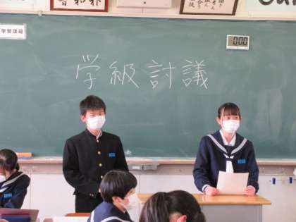 学級討議の様子です。 前期の生徒会活動について、意見を集めています。