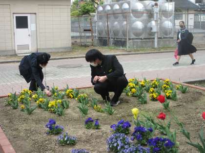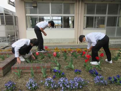 草むしりやあいさつ運動にボランティアとして参加しています。