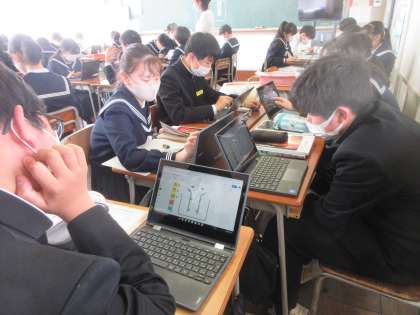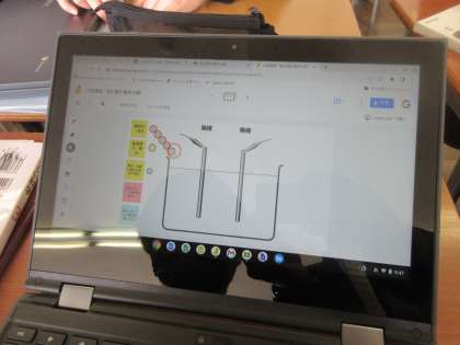 クロムブックを使って、電離の様子をモデルで表現しました。