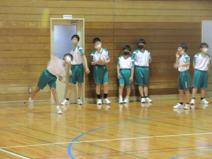 保健体育の授業です。 スポーツテストのハンドボール投げを行いました。