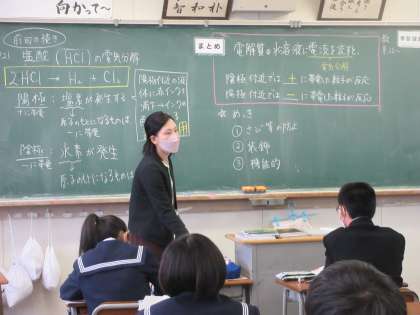 理科の授業です。 原子が電気を帯びるとは、どのような状態かを学習しました。