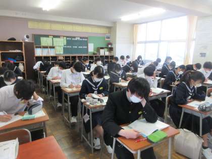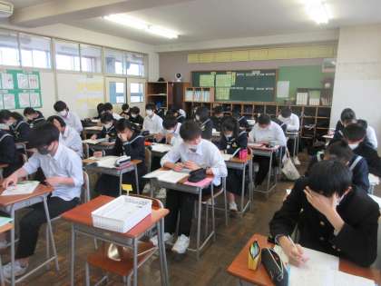 国語の授業です。 「握手」を学習し、ルロイ修道士の考え方や生き方をまとめました。