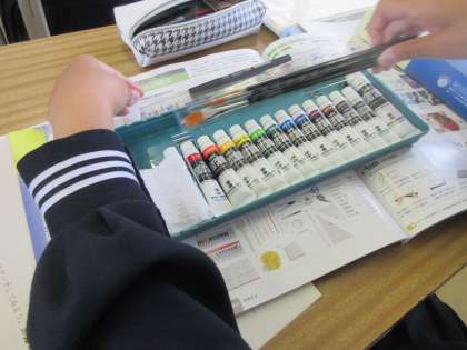美術の授業です。 ポスターカラー等を配布しました。