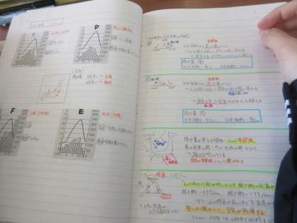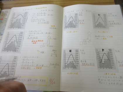 雨温図を使って、各地の特徴を学びます。 きれいにノートにまとめています。