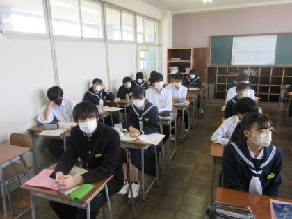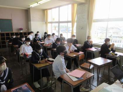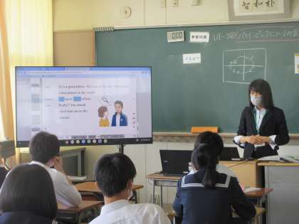 英語の授業です。 パラリンピックについての会話を、スライドを使って行います。