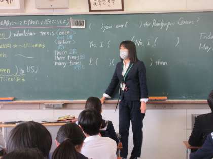 英語の授業です。 現在完了形を学習しました。 I have been to USJ many times.