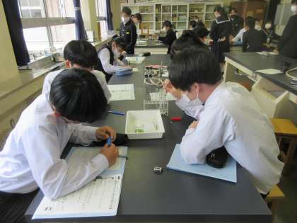 理科の授業です。 酸性やアルカリ性の水溶液の特徴を学習しました。