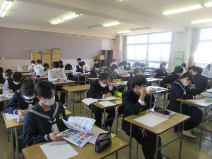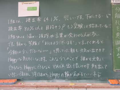 どんな作品になるのか楽しみです。 朝の担任からのメッセージです。Happyの輪を広げましょう!!