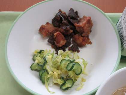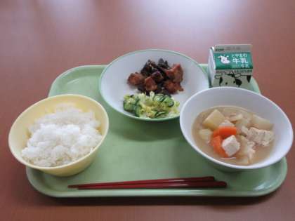今日の給食 公開日 2022/05/11 更新日 2022/05/11 給食 豚肉とレバーの甘辛い味付けがとてもおいしいです。 そして、ごまけんちんの味もご飯が進みます! 今日の献立は、 ごはん 牛乳 豚肉とレバーの揚げからめ きざみ和え ごまけんちん