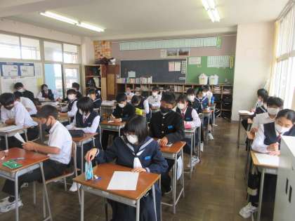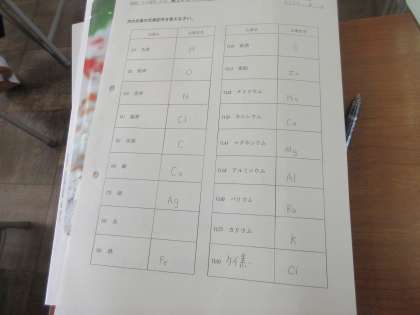理科の授業です。 元素記号の小テストです。 「あと1個が分からない・・・。」