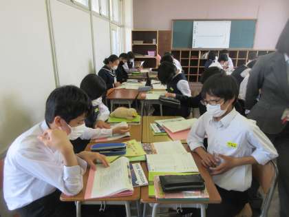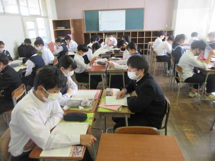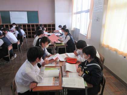 英語の授業です。 登場人物の発表の内容をリテリングしました。